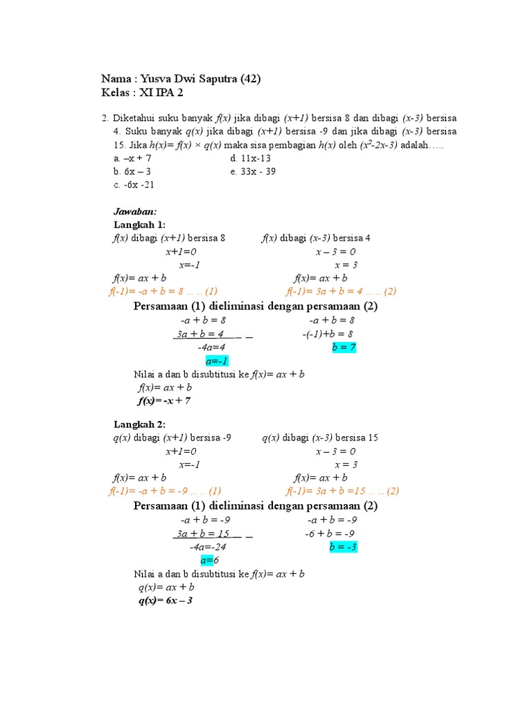 Contoh Soal Suku Banyak Kelas 11 - Contoh Soal Terbaru